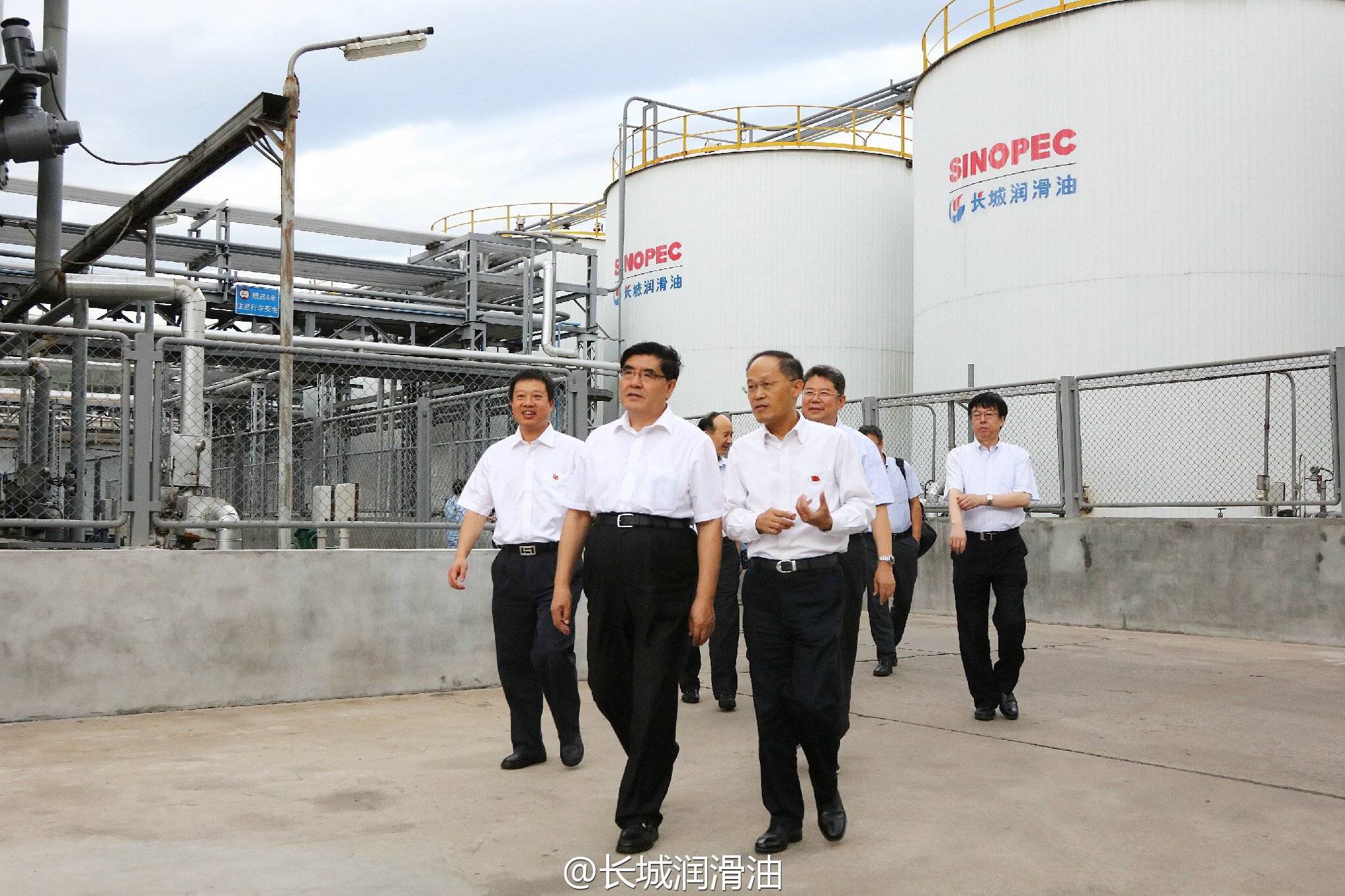 8月25日,中国石化集团公司董事长、党组书记王玉普一行到中国石化润滑油有限公司调研指导,参观了长城润滑油科研、生产现场,长城润滑油公司有关人员和书记做了工作汇报。王玉普董事长充分肯定了长城润滑油多年来取得的成绩,赞扬长城润滑油公司志存高远、扎实工作,长城润滑油的影响力在不断提升,实现了进一步的快速发展。鼓励润滑油公司发挥产销研一体化专业优势,,打造高端品牌,打造先进技术,打造内生动力,争当中国石化走向产业链中高端的排头兵,为中国石化的转方式和调结构、提升质量增效升级作出新的更大贡献。中国石化集团公司副总经理、股份公司高级副总裁马永生,总部机关相关部门领导一同参加调研。